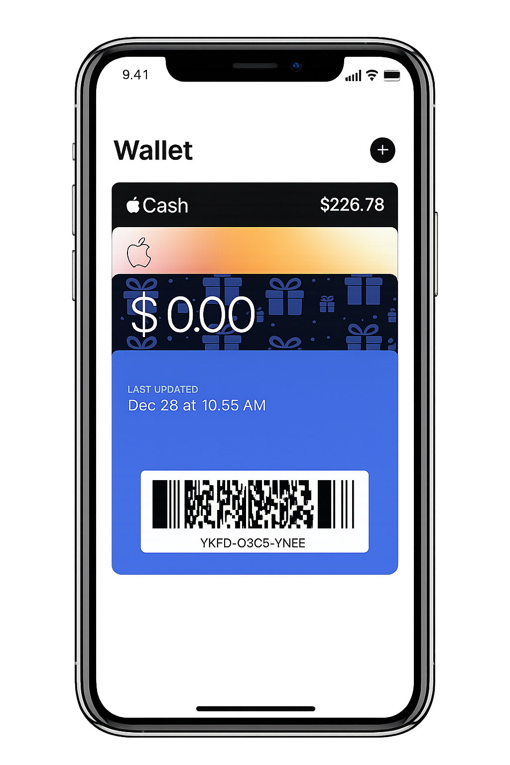 Members add their card to Apple Wallet or Google Pay with a single tap. Check balances, receive push notifications, and pay — all without downloading an app.